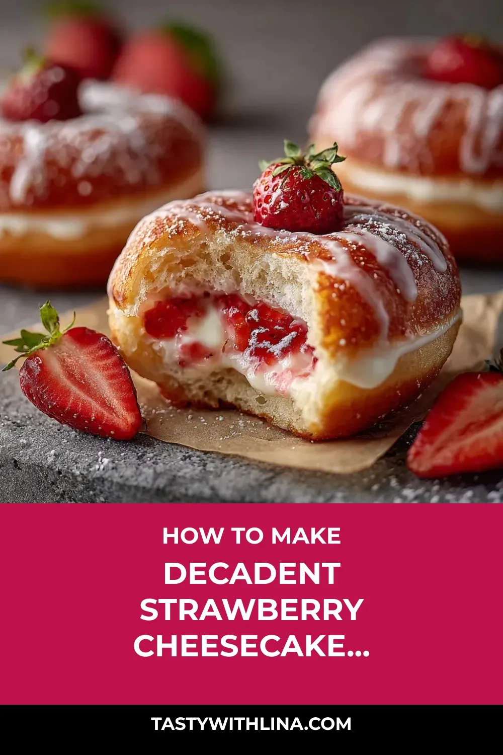 Decadent Strawberry Cheesecake Filled Donuts