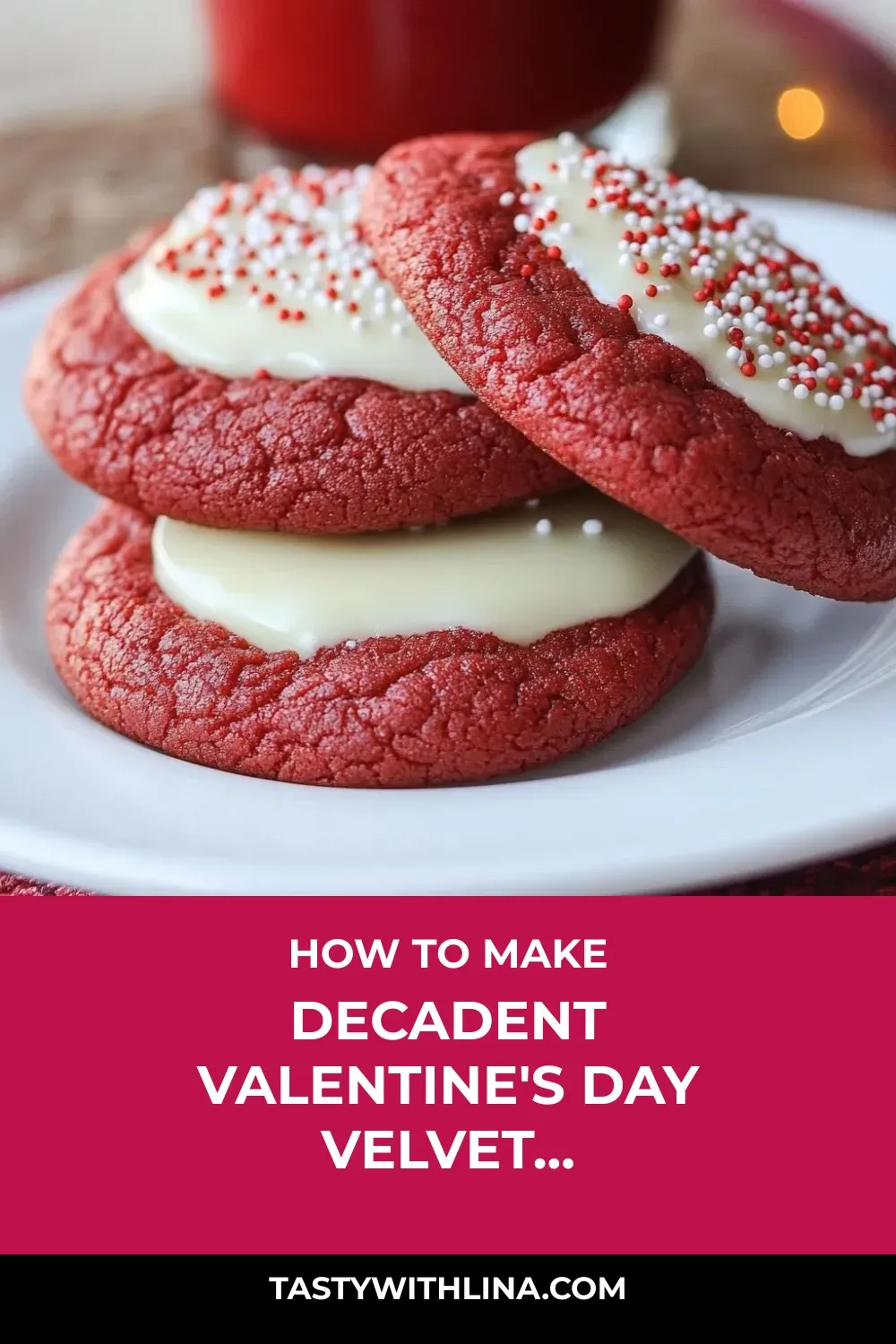 “Indulge in these festive Red Velvet Valentine Cookies with a white chocolate twist, a delightful treat that’s as beautiful as it is delicious.”