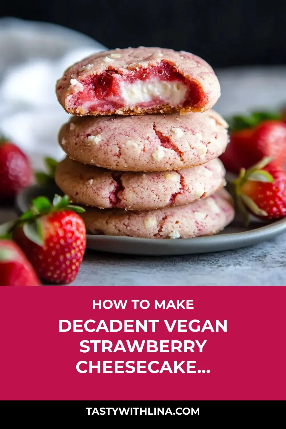 Indulge in luscious Strawberry Vegan Cheesecake Cookies – a plant-based delight that surprises everyone with its rich flavors and chewy cookie goodness!