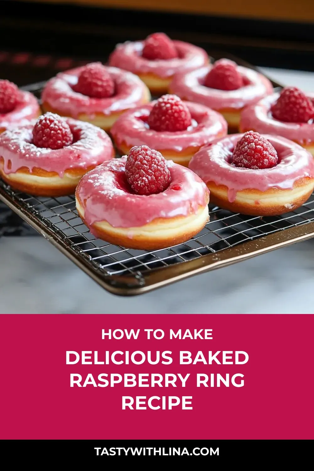 For a fun and elegant presentation, serve these Tasty Baked Raspberry Rings on a tiered dessert stand at your next gathering. The stacked presentation will make them look like a fancy treat, perfect for brunch or a dessert spread. Pair them with some fresh fruit and a dollop of whipped cream to enhance the flavors and textures.