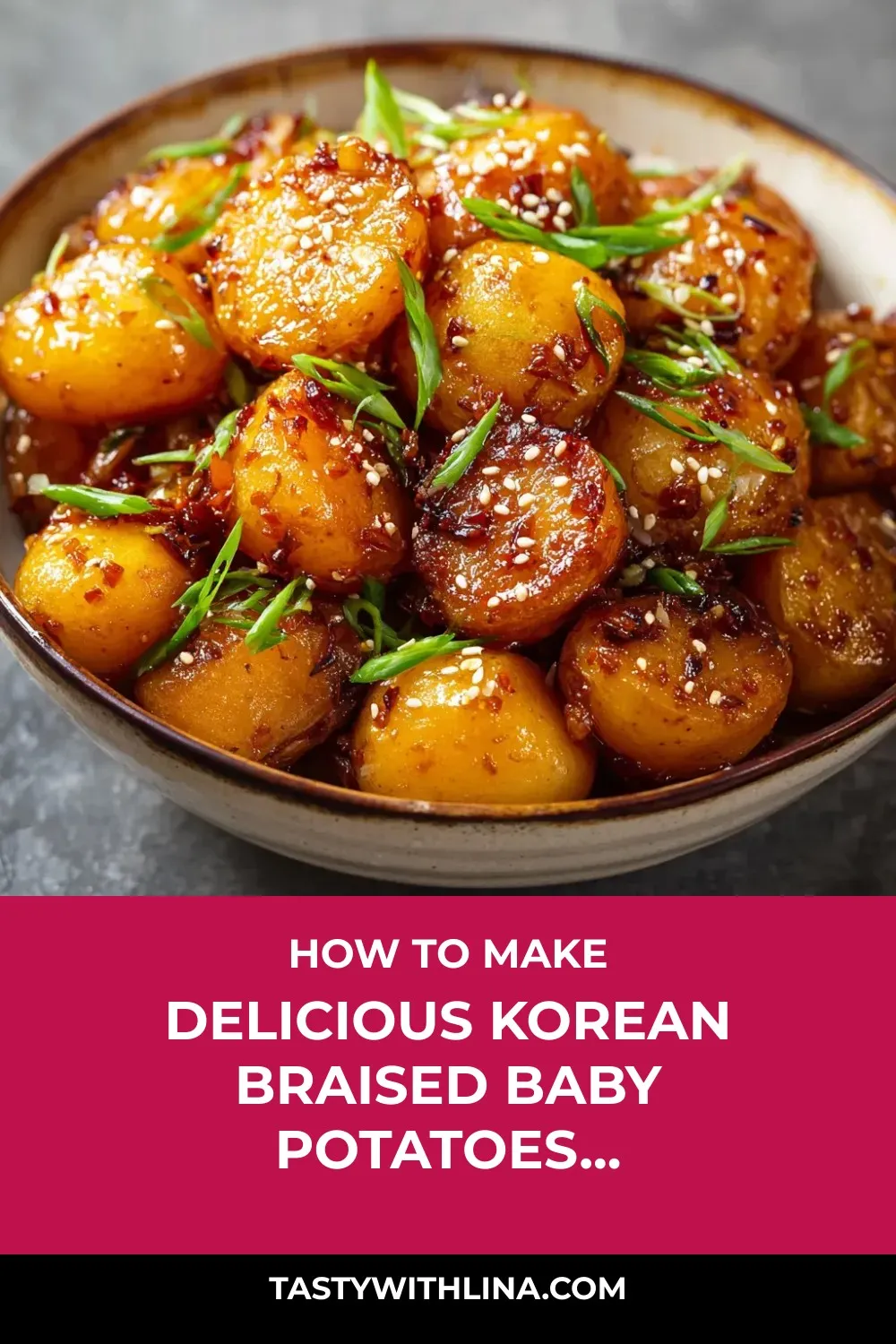 Introducing my favorite go-to side dish that never fails to impress – Korean Braised Baby Potatoes! These tender baby potatoes, braised to perfection in a sweet and savory sauce, are a real crowd-pleaser. The glossy finish, nutty sesame seeds, and crisp green onion toppings add a delightful crunch to every bite, making it hard to resist reaching for seconds.