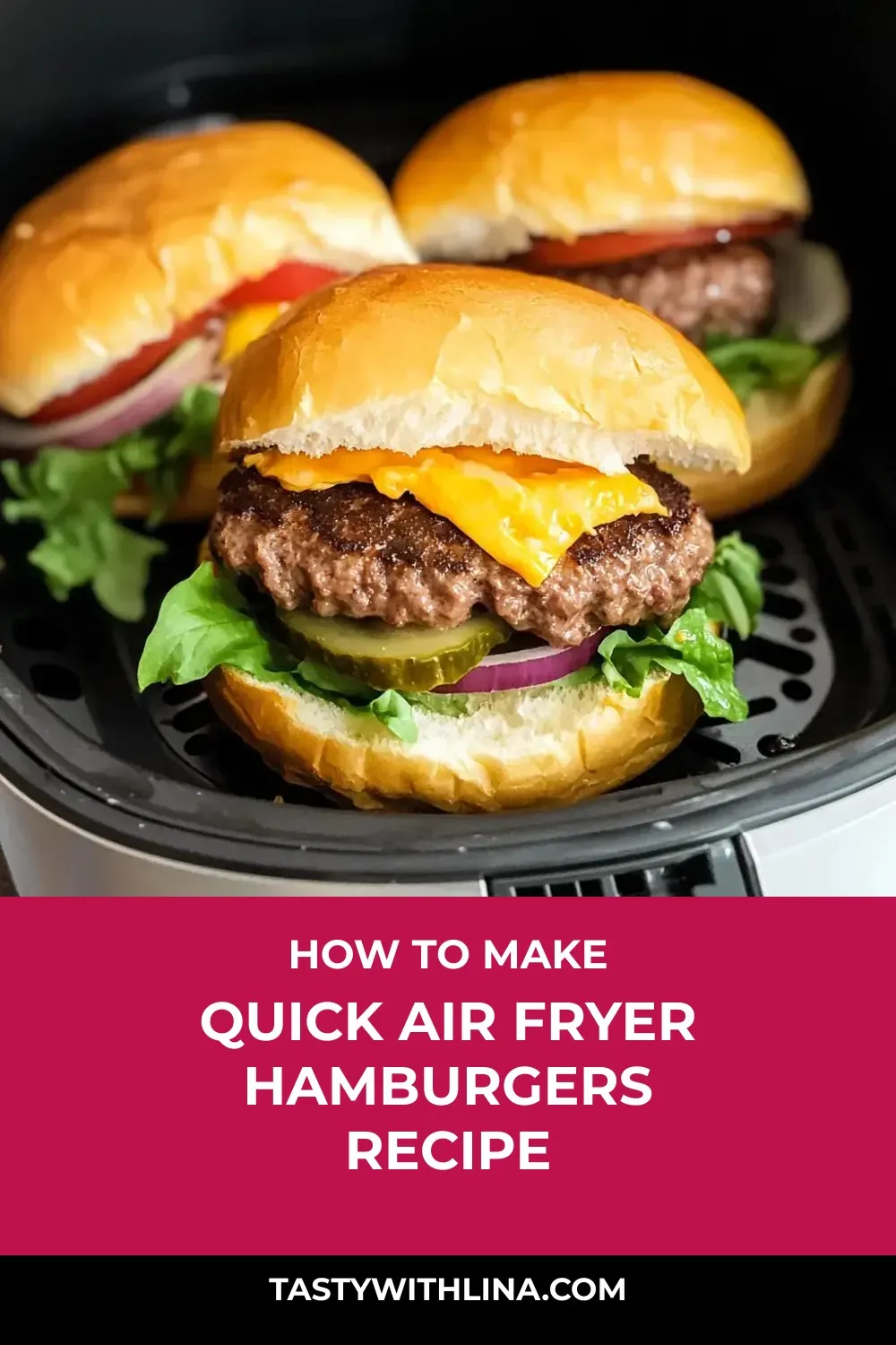 Effortless Air Fryer Hamburgers: Juicy, crispy burgers cooked in minutes, customizable with toppings, and perfected in the air fryer for hassle-free deliciousness.