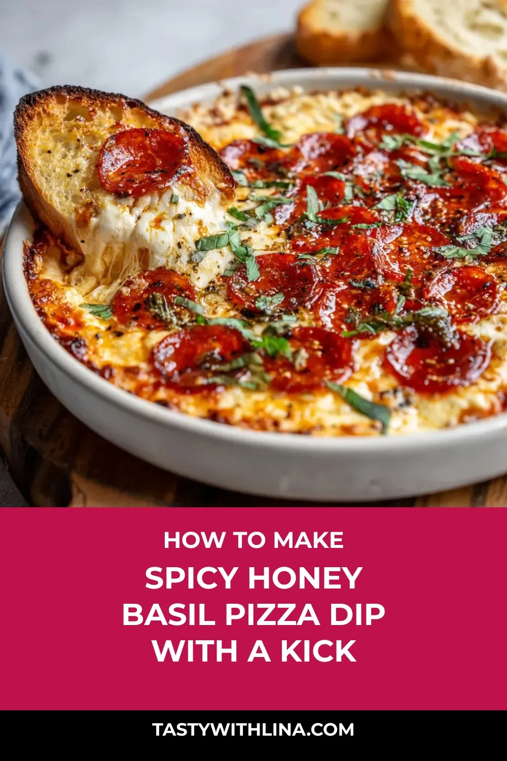 For a perfect Hot Honey Basil Pizza Dip, make sure to brush the baguette slices with olive oil or melted butter before baking. This will give them a golden, crispy texture that pairs perfectly with the creamy dip. Don’t forget to season the slices with garlic powder and salt for an extra burst of flavor.